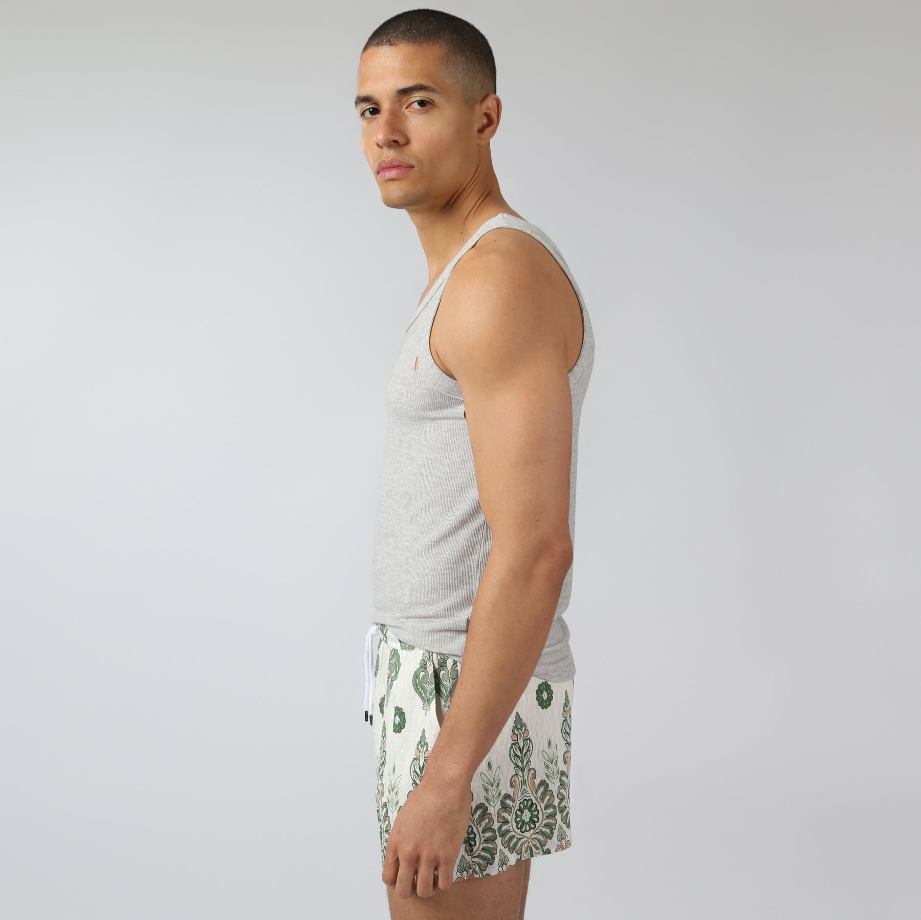 The Slash Ribbed Tank is a men’s slim-fit tank top cut from a soft, luxe ribbed stretch jersey with a smooth, body-skimming feel.