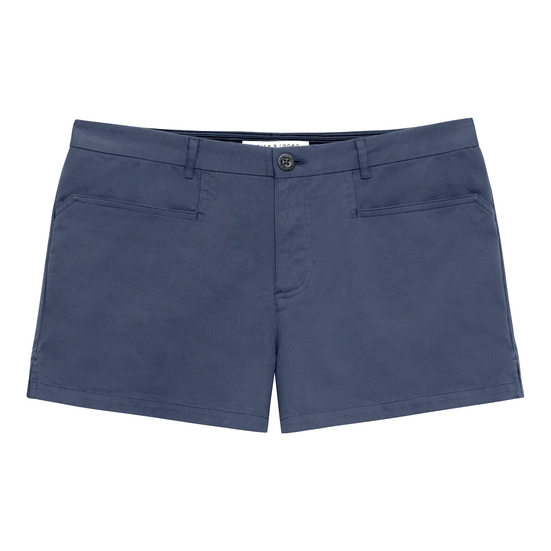 Crafted from 100% cotton garment-washed, sanded twill, the fabric delivers a soft, lived-in feel with refined structure. T-pockets add classic tailoring, while Pebble Stripe contrast detailing inside the waistband brings an unexpected touch of luxury. The real standout is the fit: slim, comfortable, and cut with a confident 3" inseam that flatters from every angle.