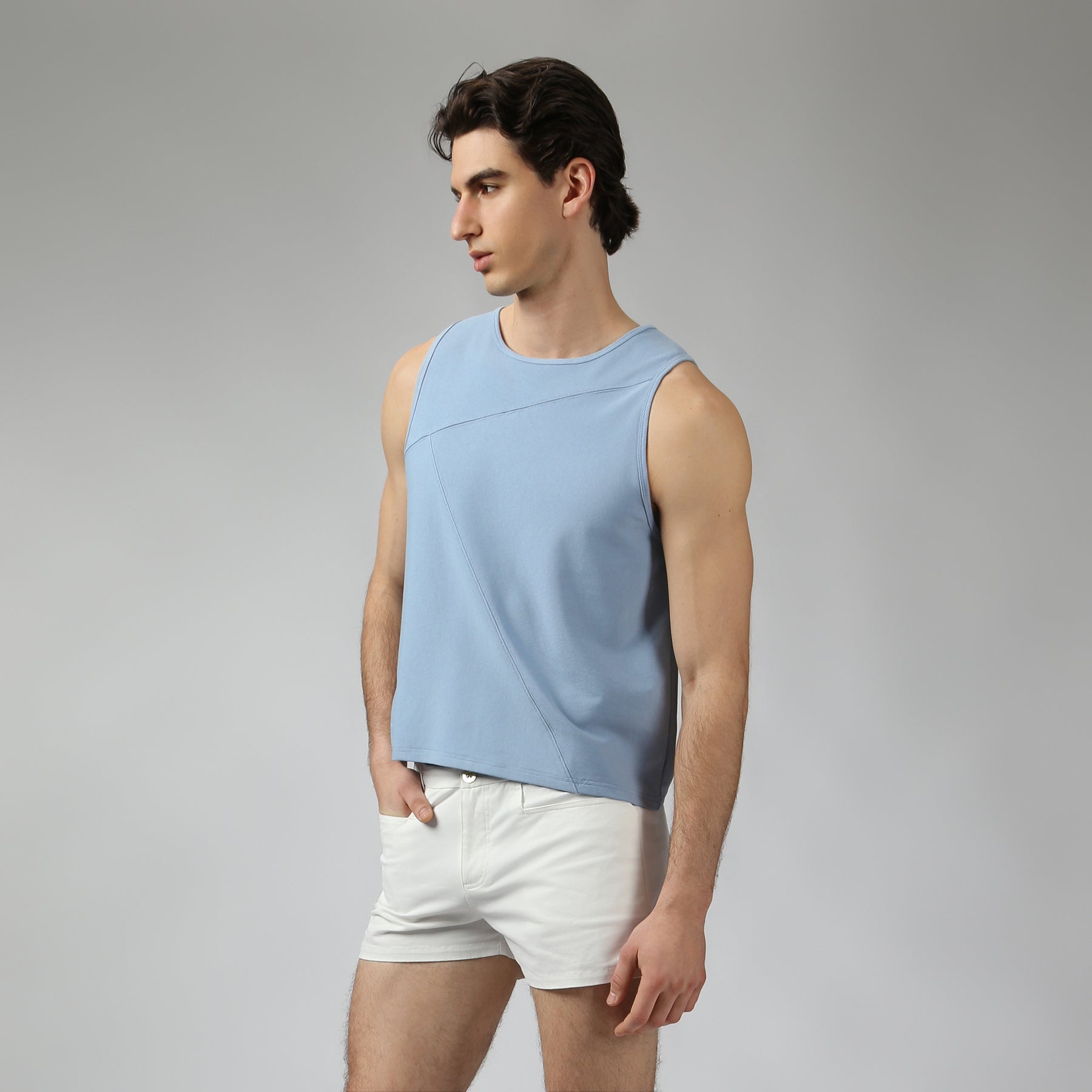 NEW- Sky Beach Walk Rib Muscle Tee