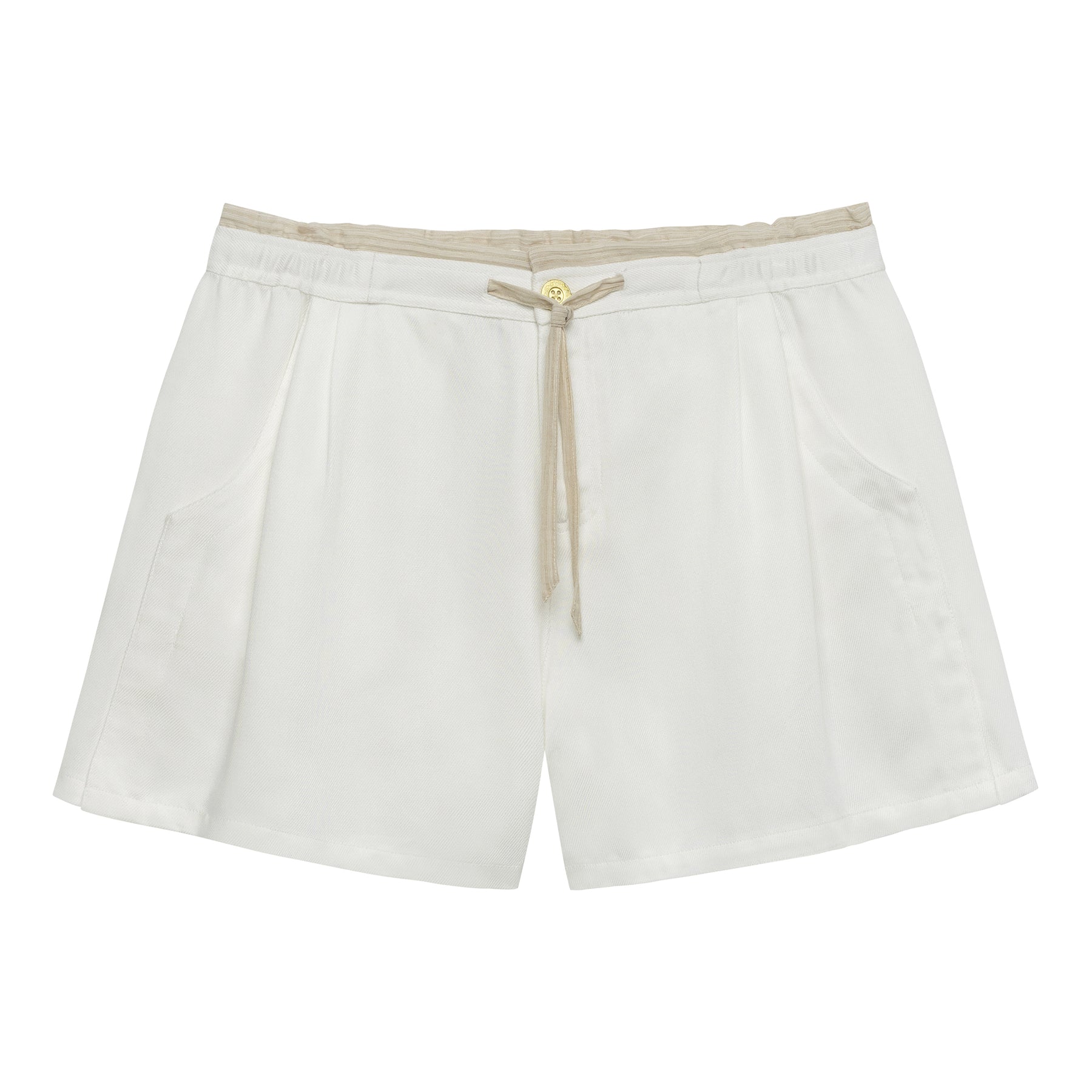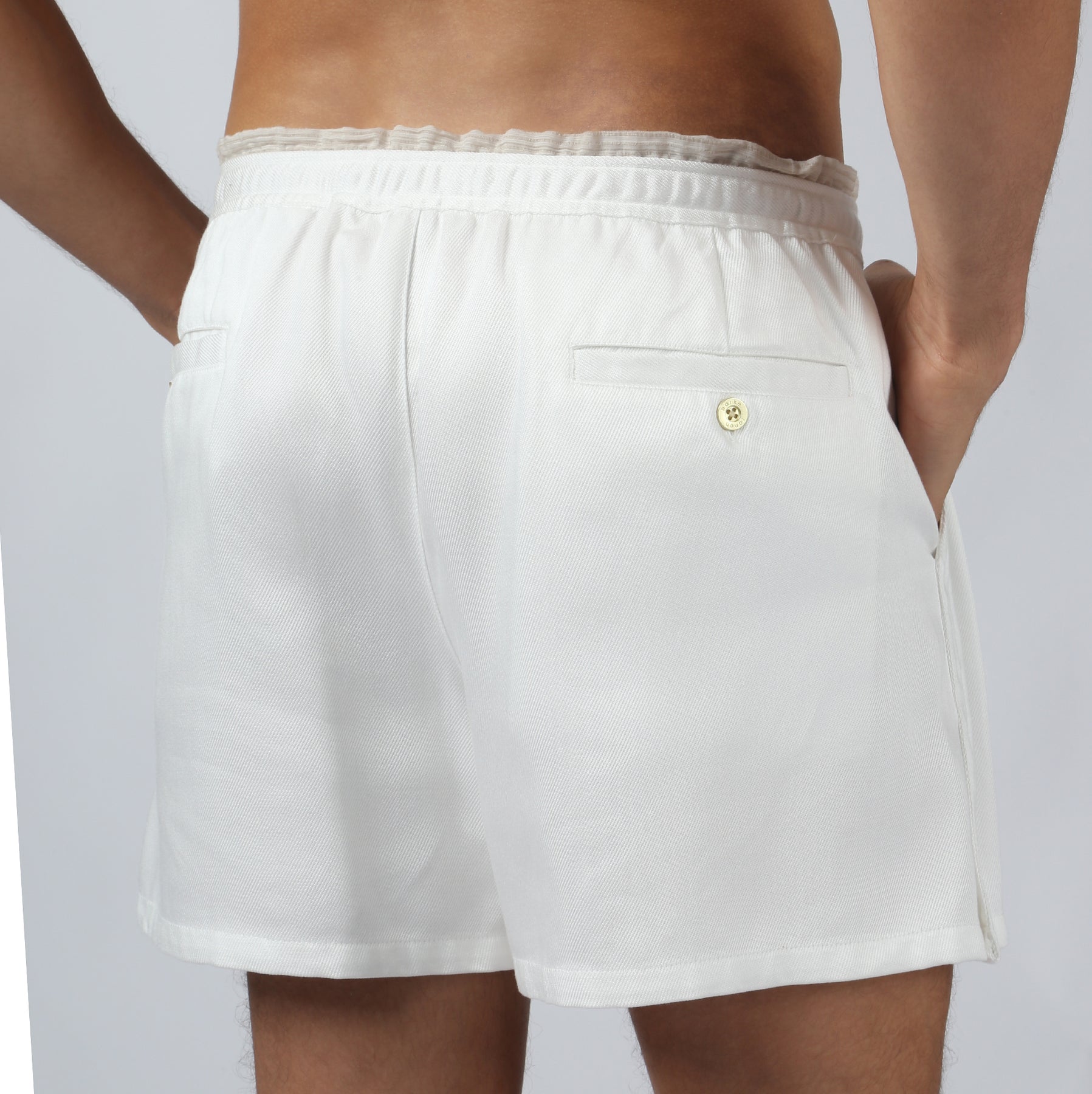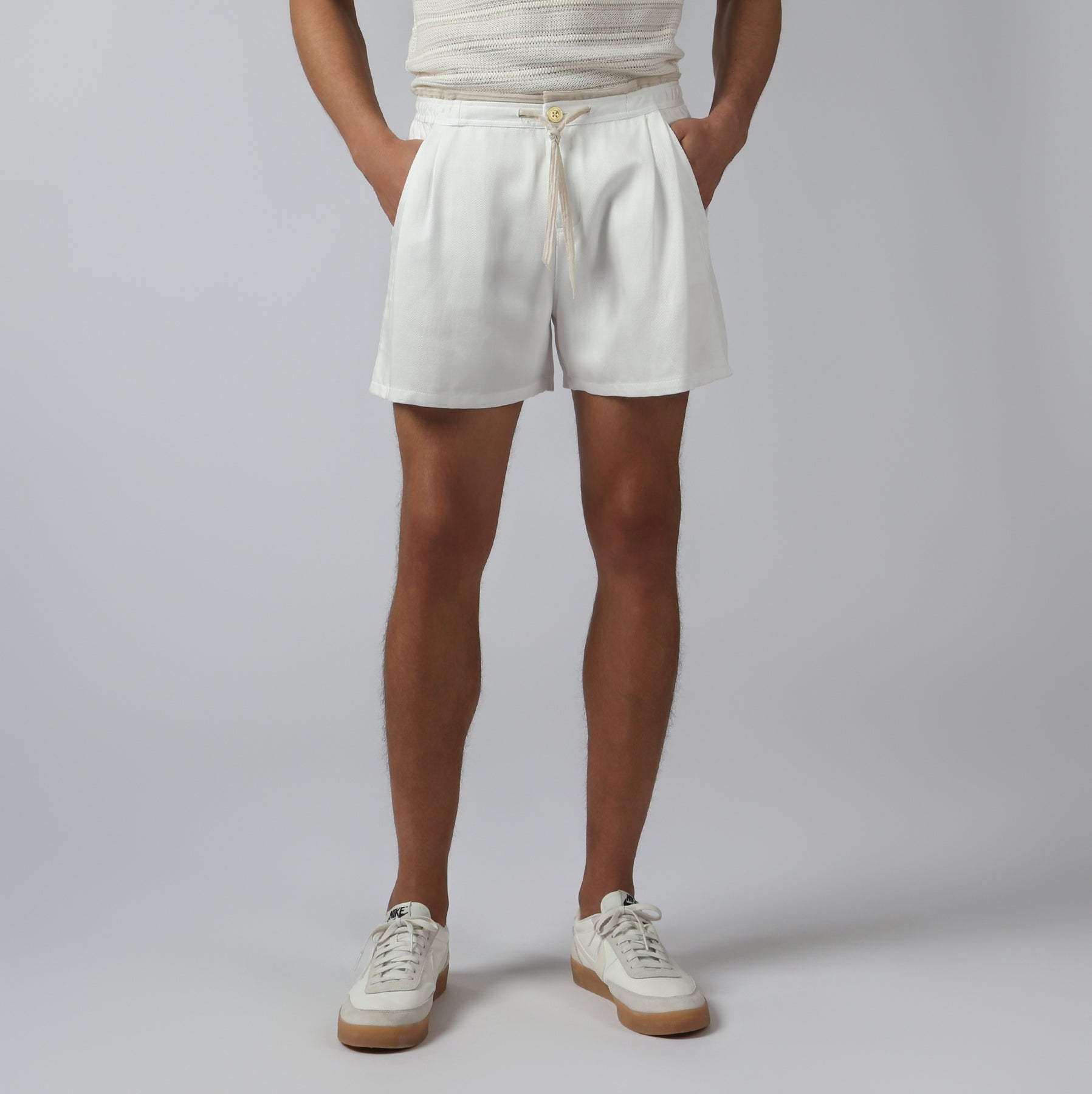 Crafted from 100% lyocell, the fabric is luxuriously soft with a fluid drape that moves beautifully. Finished with tailored detailing, side vents, and a refined contrast trim at the waistband, this short delivers polish with edge—dress it up or let it speak for itself.