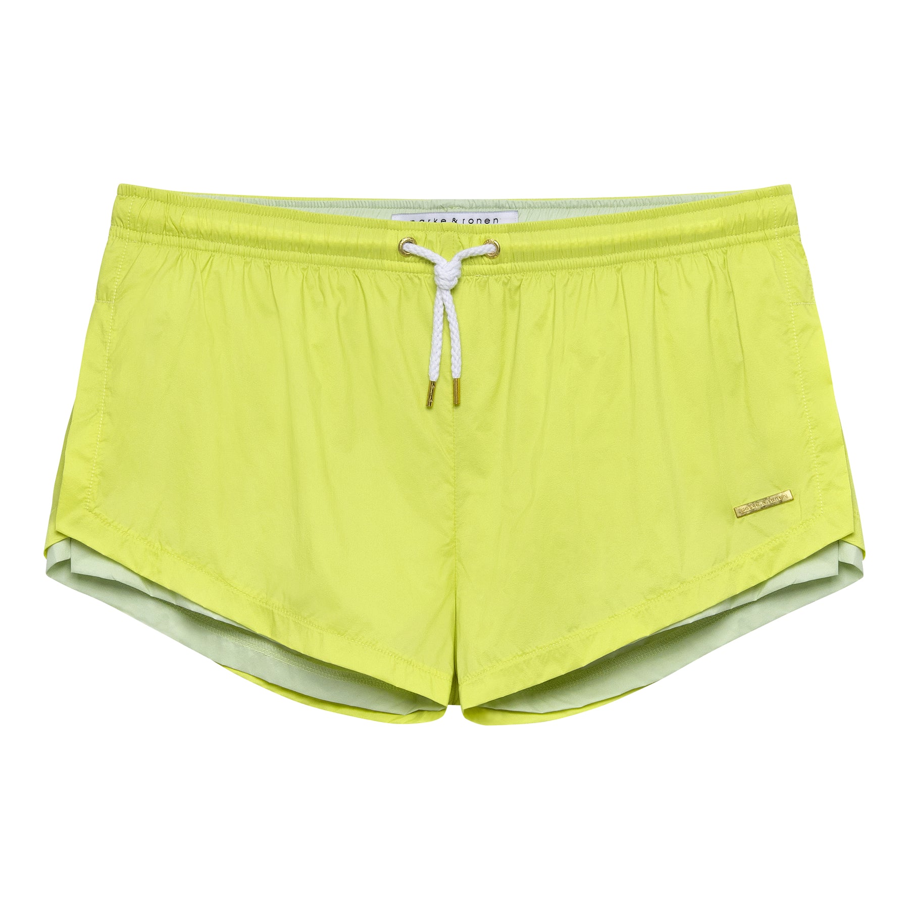 Dive into action with the Aero Swim Short, crafted 2 layers of ultra light watere resistant nylon for unparalleled freedom of movement. Featuring a trim 1-3/4” inseam, high-cut side slits, and a matching soft power mesh lining for all-day support, these shorts are built for performance and style. A branded zip pocket and signature drawcord add functional elegance to your summer look.